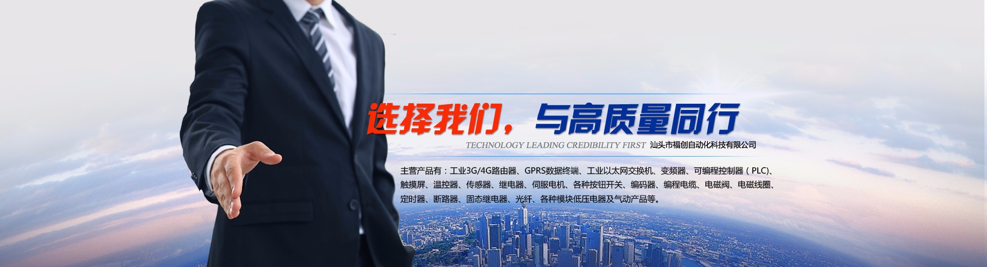 汕頭市福創(chuàng)自動化科技有限公司是一家集自動化元件的代理銷售與維修、自動化設備設計制造、自動化工程安裝改造、機電工程安裝改造、自動化機械設備設計與制造的企業(yè)。 主營產品有:工業(yè)3G/4G路由器、GPRS數(shù)據(jù)終端、工業(yè)以太網交換機、變頻器、可編程控制器(PLC)、觸摸屏、溫控器、傳感器、繼電器、伺服電機、各種按鈕開關、編碼器、編程電纜、電磁閥、電磁線圈、定時器、斷路器、固態(tài)繼電器、光纖、各種模塊低壓電器及氣動產品等。